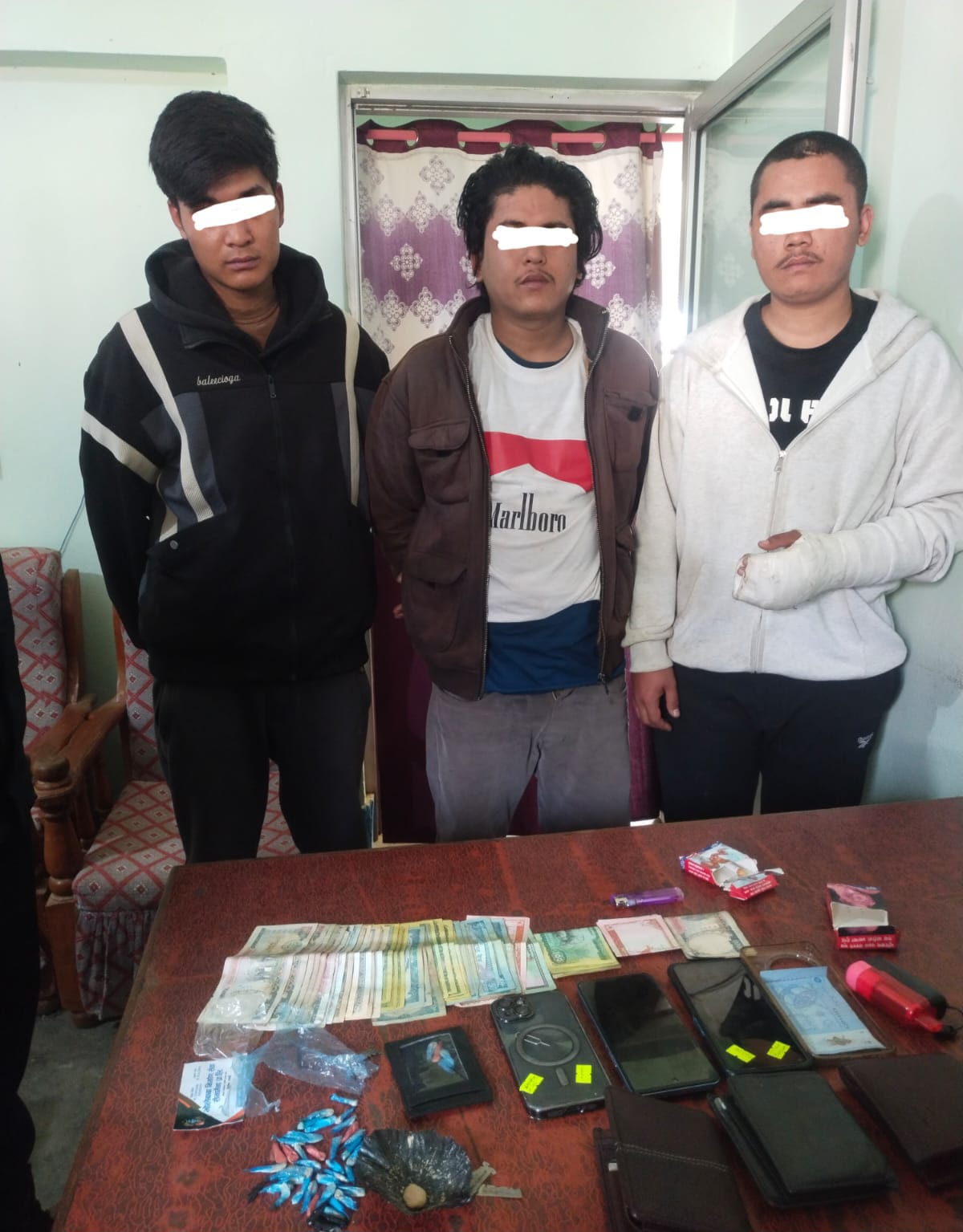 पक्राउ पर्नेमा सैनामैना नगरपालिका वडा न.२ बस्ने वर्ष २७ का विशाल ठकुरी,सोही ठाउँ बस्ने वर्ष २३ का मञ्जिल बराल मगर,वर्ष २० का अस्मिन राना रहेको प्रहरीले जनाएको छ । उनीहरुको साथबाट ४ ग्राम ४९० मिलिग्राम ब्राउन सुगर जस्तो देखिने खैरो धुलो अवैध लागुऔषध बरामद भएको प्रहरी निरीक्षक के.सीले उल्लेख गरे ।