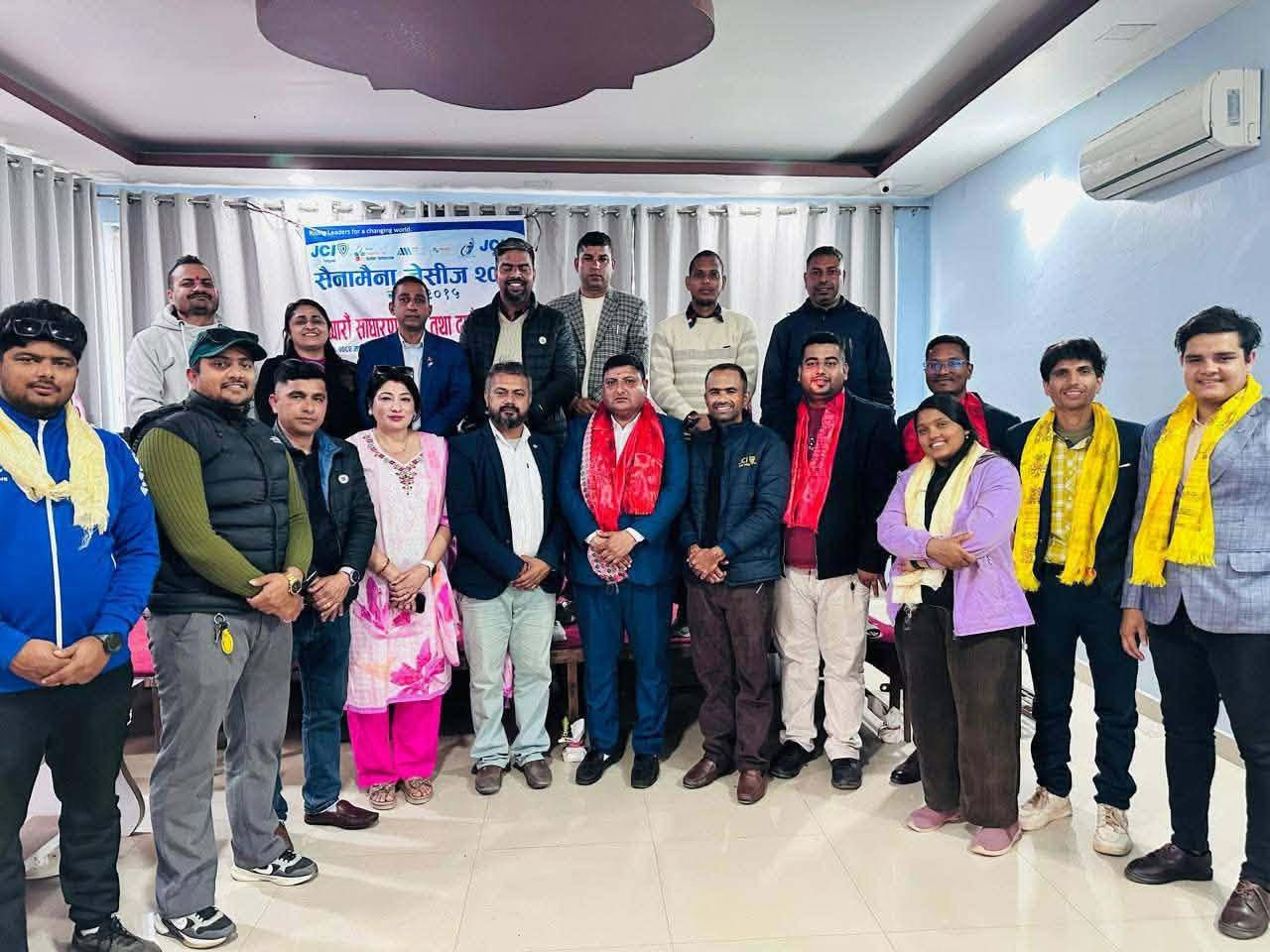 नवनिर्वाचित समितिलाई बधाई ज्ञापन गर्दै सैनामैना जेसीज वर्ष २०२५का अध्यक्ष गोविन्द खरेलले वर्ष २०२६लाई स्वर्णिम वर्ष बनाउन समितिलाई आग्रह गरेका छन् ।